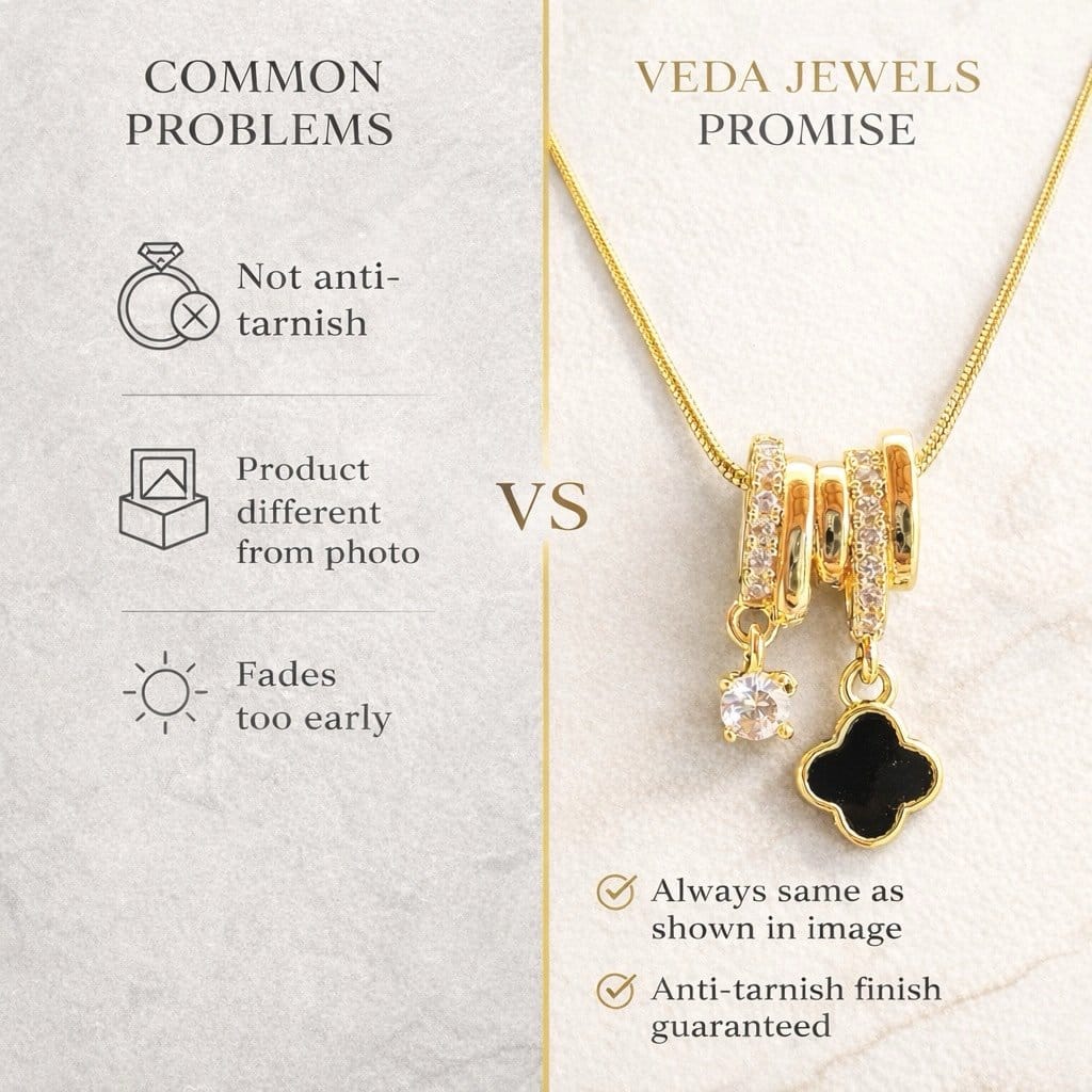 When buying gold plated jewellery, durability matters the most. This black clover gold pendant necklace is designed with an advanced anti tarnish coating that helps maintain shine for a longer period. Unlike regular fashion jewellery, this necklace resists fading and keeps its premium look intact.