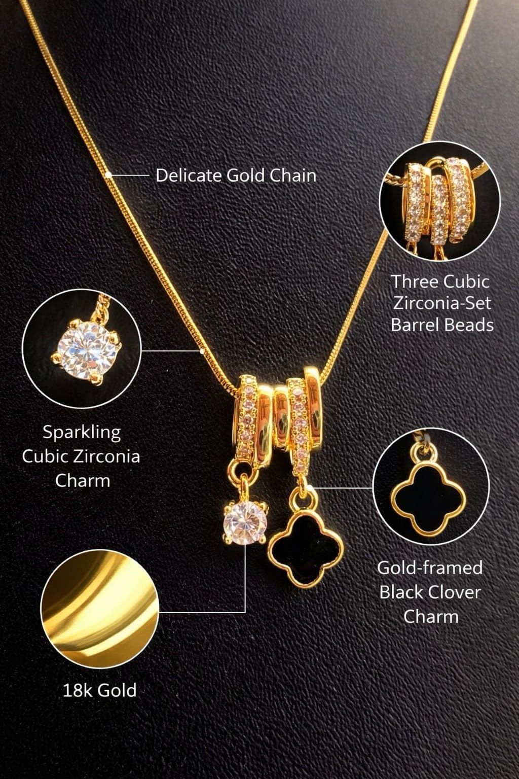 This black clover gold pendant necklace is carefully crafted with a high-quality 18K gold plated finish that gives it a rich and elegant appearance. The anti tarnish coating protects the necklace from fading, helping it maintain its shine even with regular use. Whether you wear it daily or occasionally, this anti tarnish clover necklace is designed to stay beautiful for a long time.