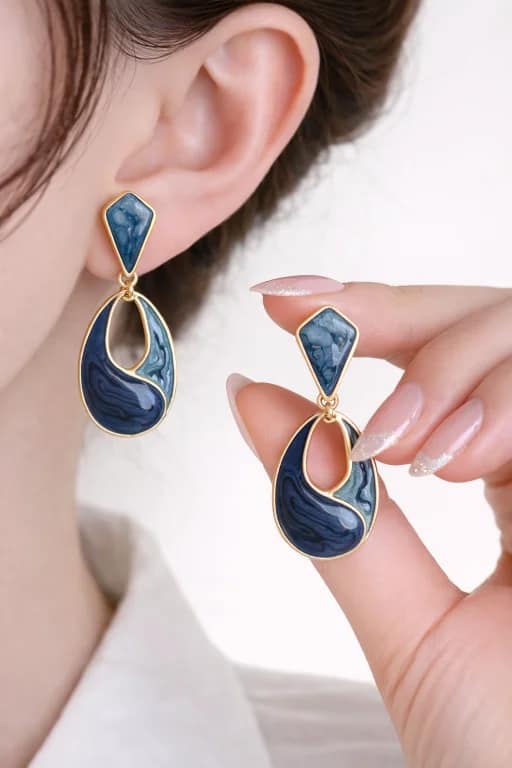 The highlight of these earrings is the beautiful blue marble pattern that gives them a distinctive and artistic look. The swirling blue shades create a natural marble effect that feels both modern and luxurious.
