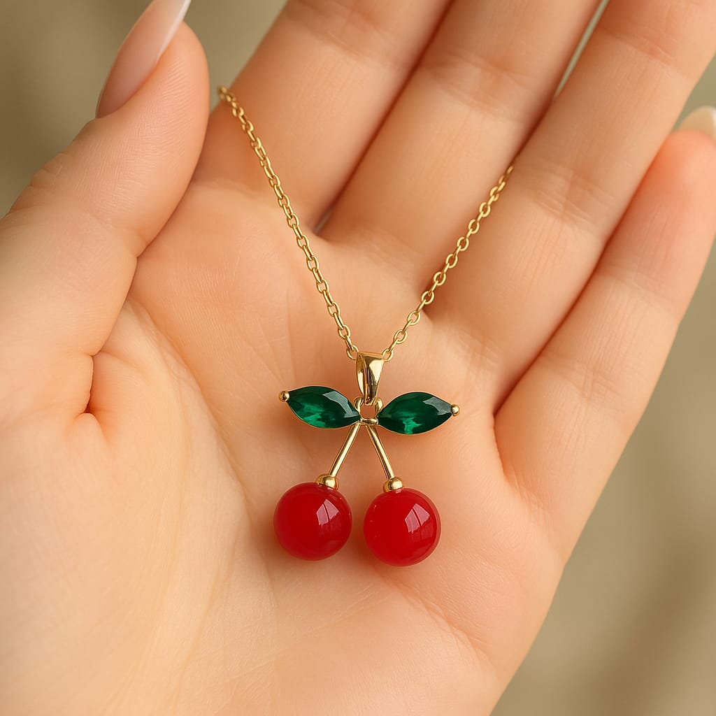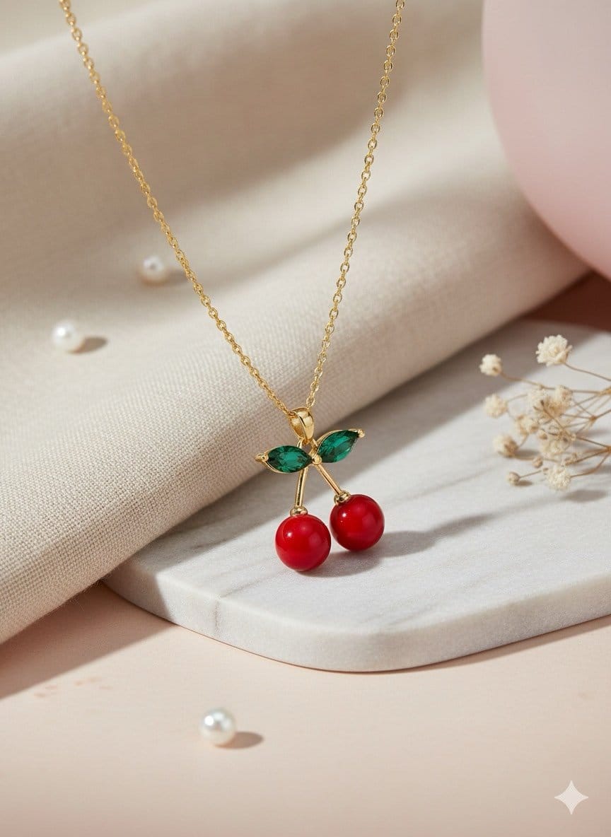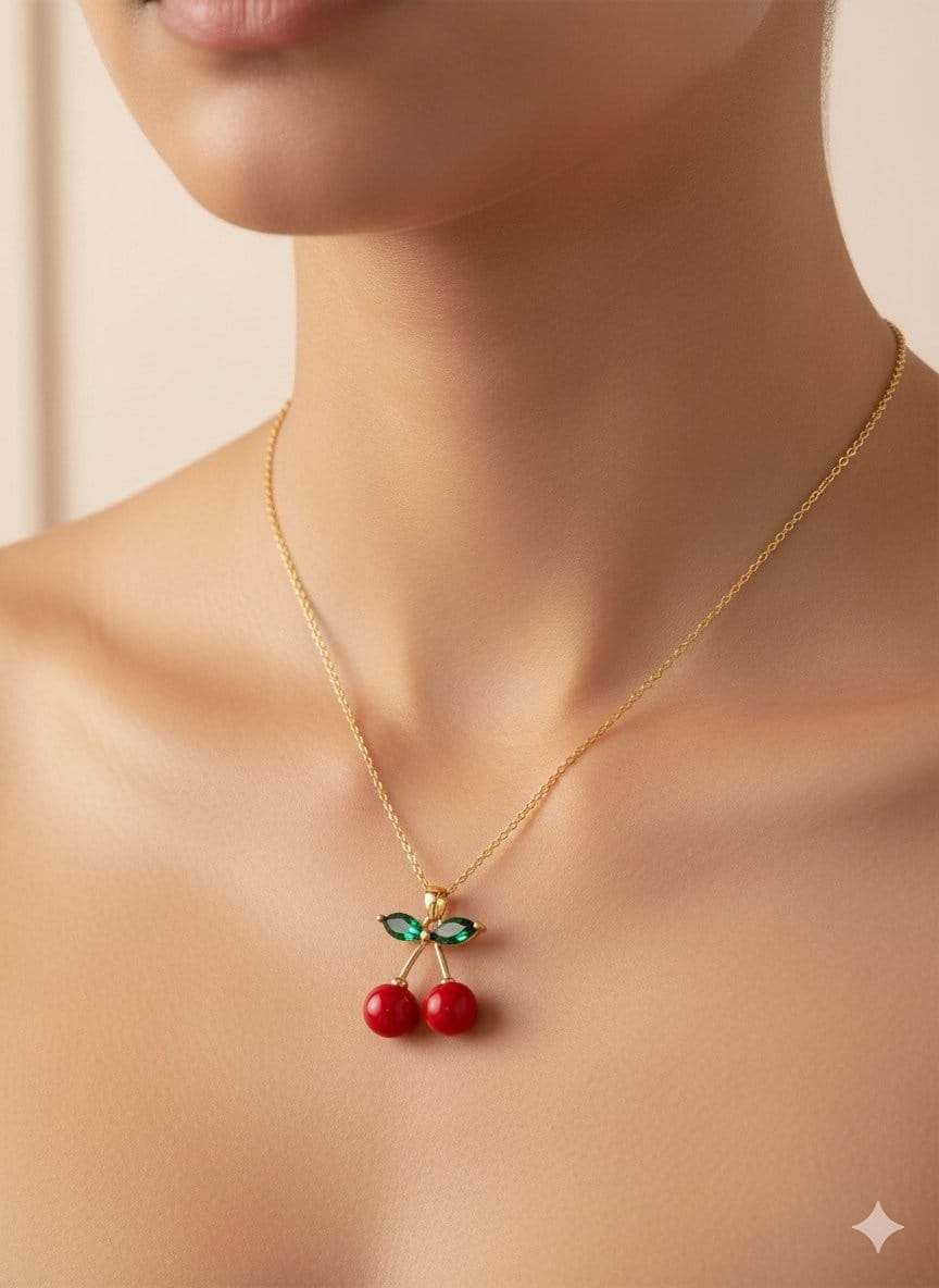 The Cherry Blossom Pendant Necklace is designed for women who love playful, feminine, and eye-catching jewellery. Inspired by blooming cherry blossoms and fresh spring aesthetics, this necklace features red cherry stones paired with delicate green leaf accents, creating a charming and youthful look.