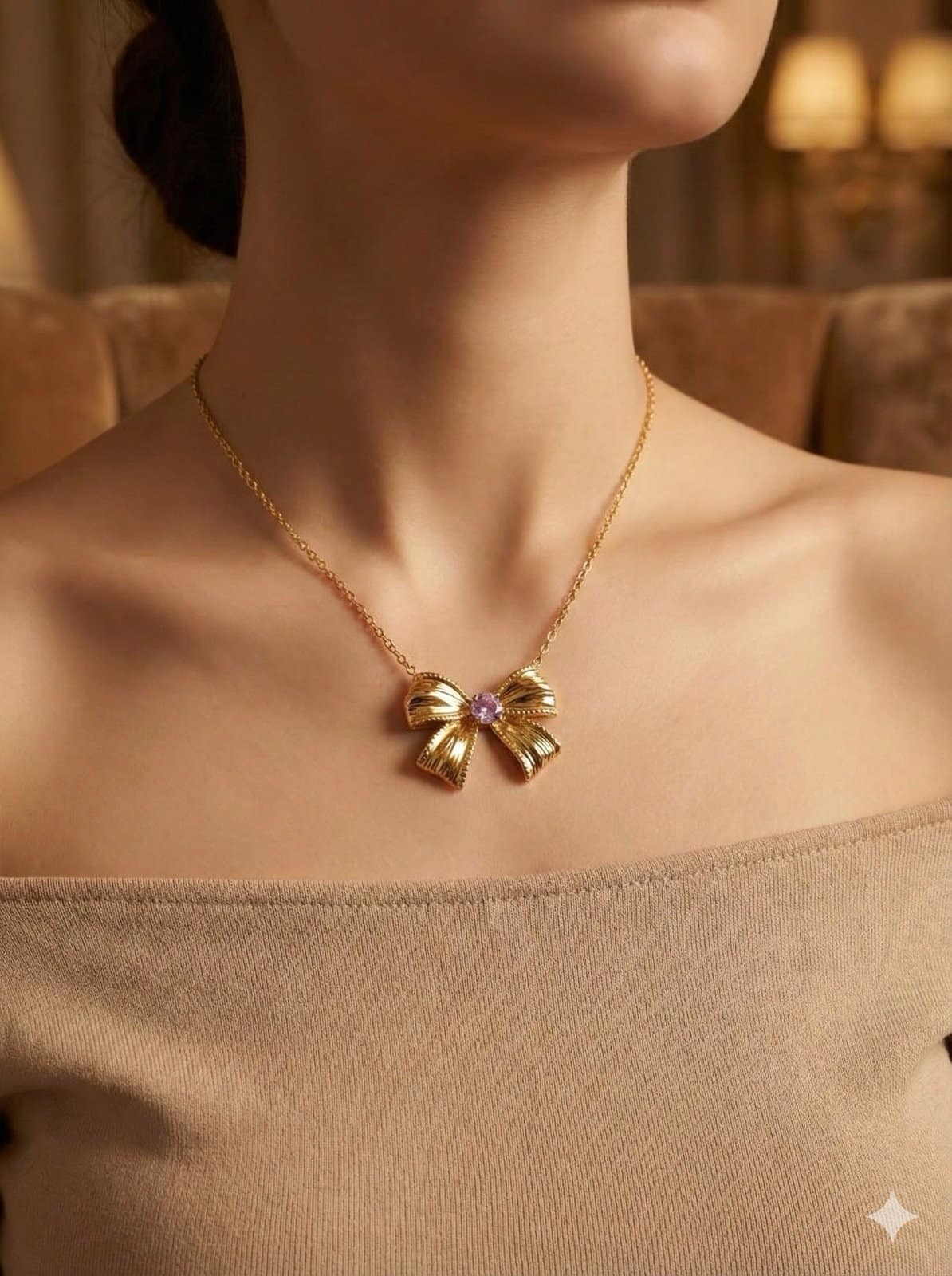 Comfort is key when choosing daily wear jewellery. This lightweight gold plated bow necklace sits comfortably around your neck without causing irritation. It is skin-friendly and easy to maintain, making it ideal for long hours of wear. You can style this cute bow pendant necklace for girls all day without feeling heavy or uncomfortable.