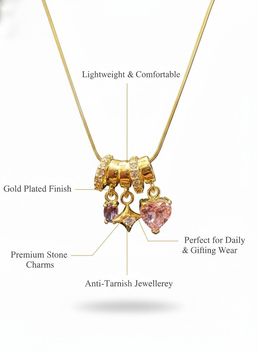 Crafted from premium quality brass material, this necklace features a luxurious gold-plated finish that enhances shine and elegance. The advanced anti-tarnish coating helps maintain its brilliance for long-lasting wear, making it perfect for daily use as well as special occasions.
