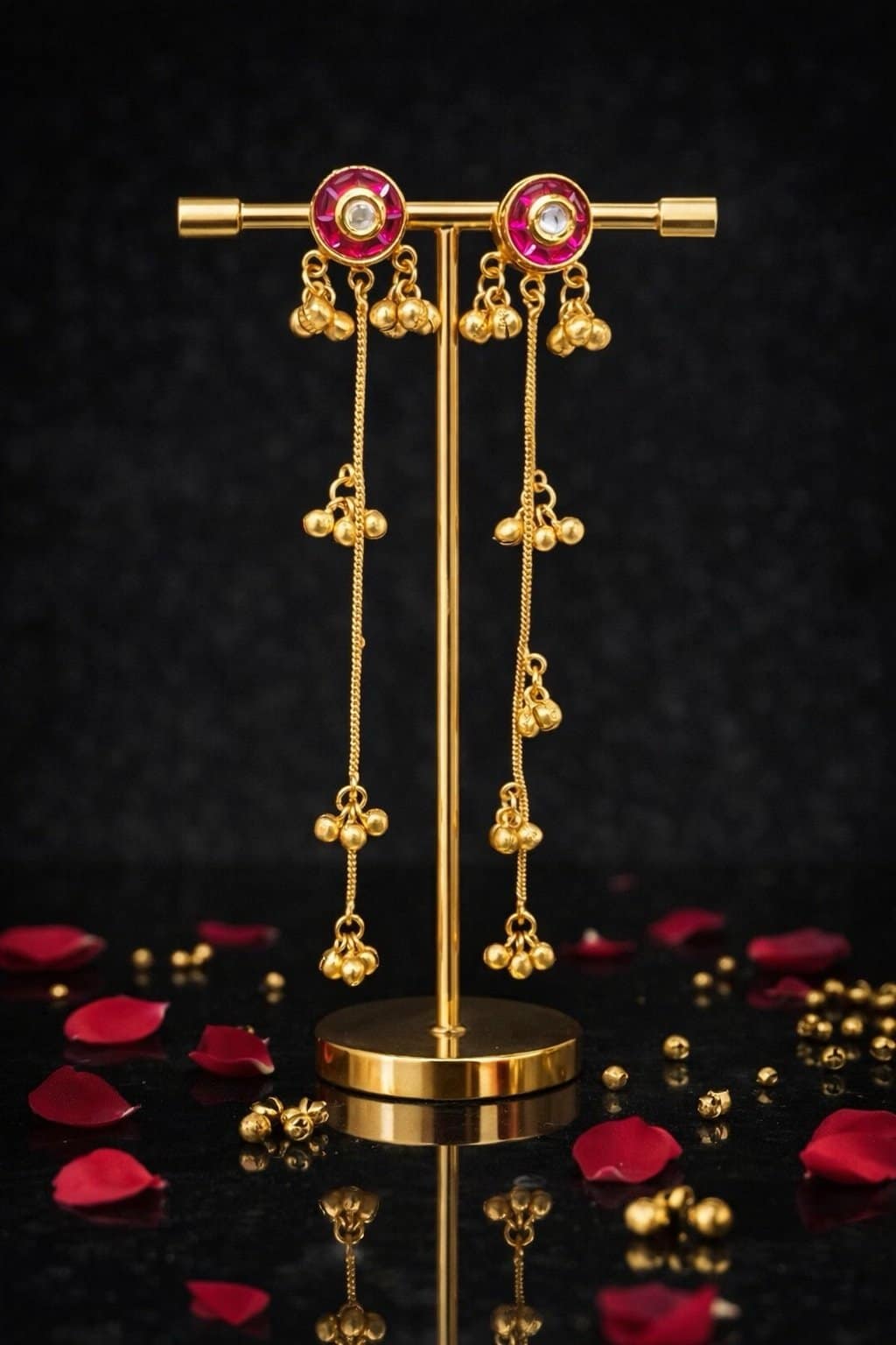 Inspired by the rich heritage of Kashmir, the Kashmir Gulnaar Long Dangler Earrings reflect royal elegance and traditional craftsmanship.