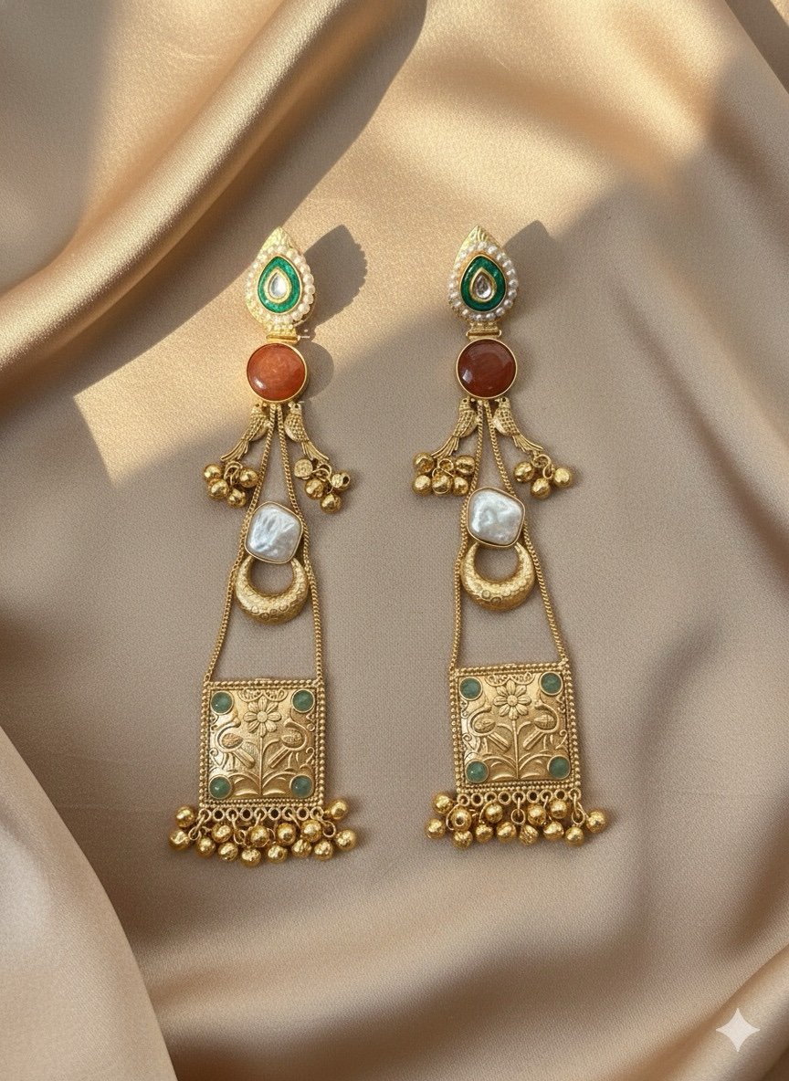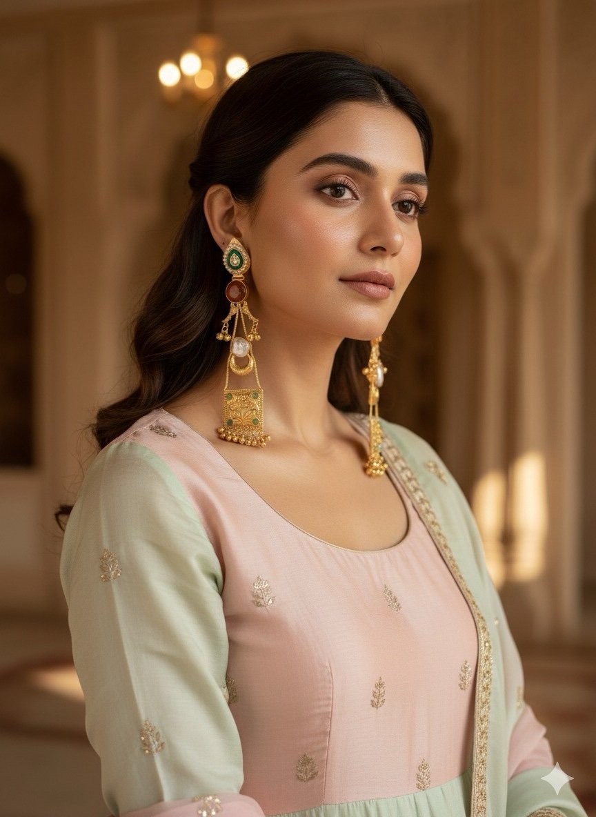 Lightweight yet impactful, these earrings are ideal for weddings, festive gatherings, and special occasions. They pair beautifully with anarkalis, lehengas, sarees, and elegant suits, making them a versatile addition to your ethnic jewellery collection.