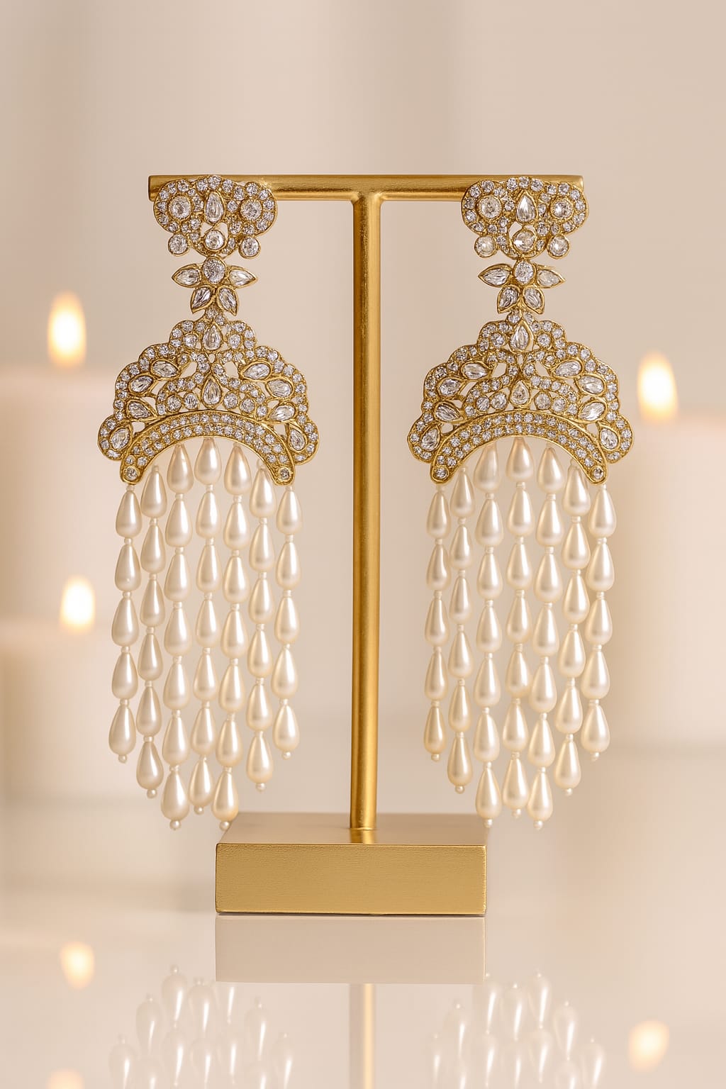 Whether it’s a wedding, a grand celebration, or a glamorous photoshoot, Pearl Rainfall Luxe Earrings will ensure all eyes are on you.
