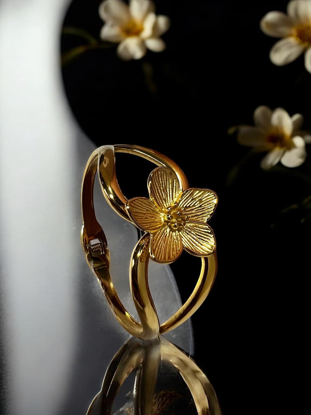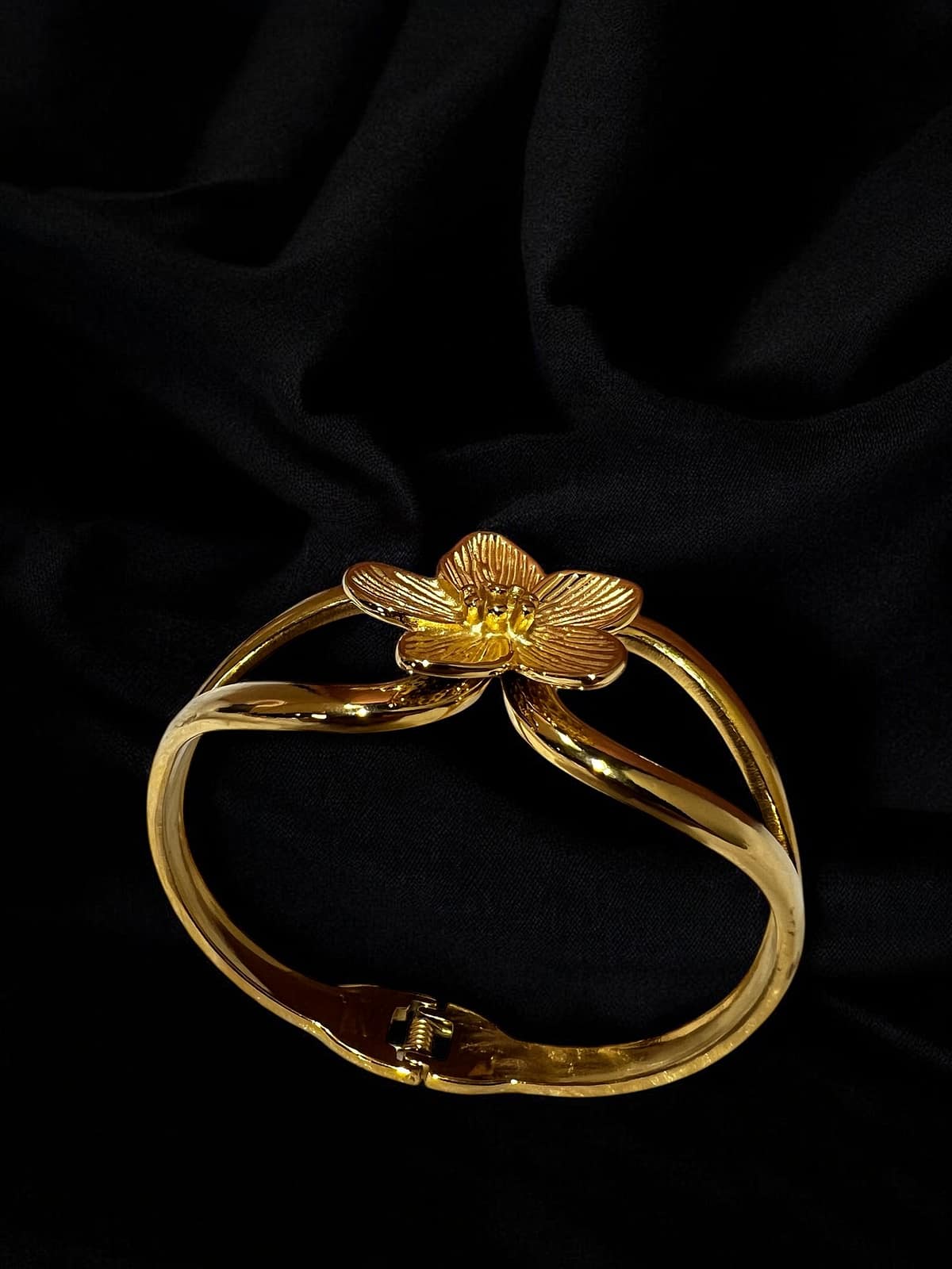 - 18K Gold-polished floral cuff bracelet