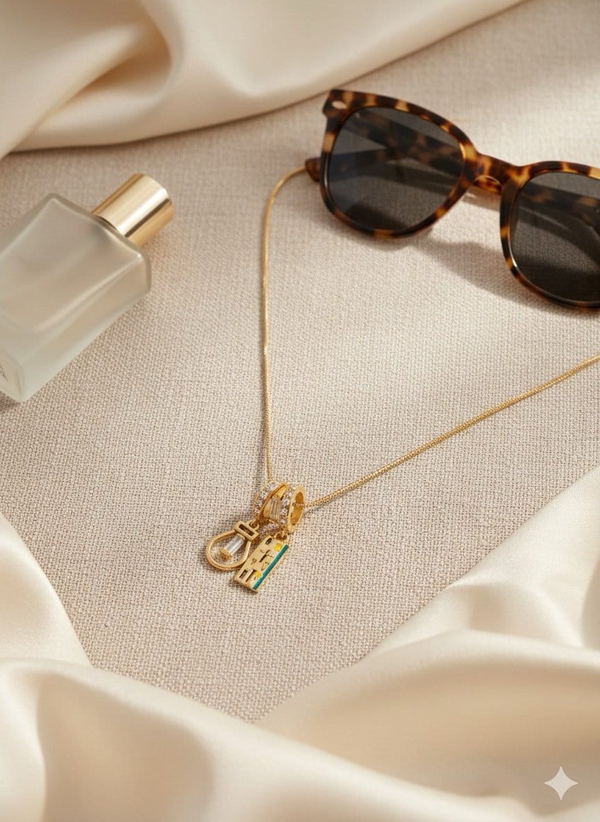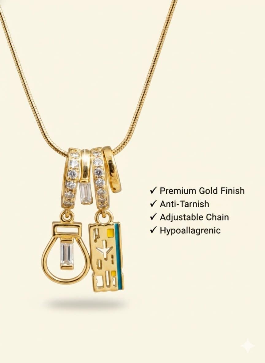 Designed for dreamers and explorers, the Voyara Anti-Tarnish Travel Charm Necklace is a chic tribute to wanderlust and adventure.