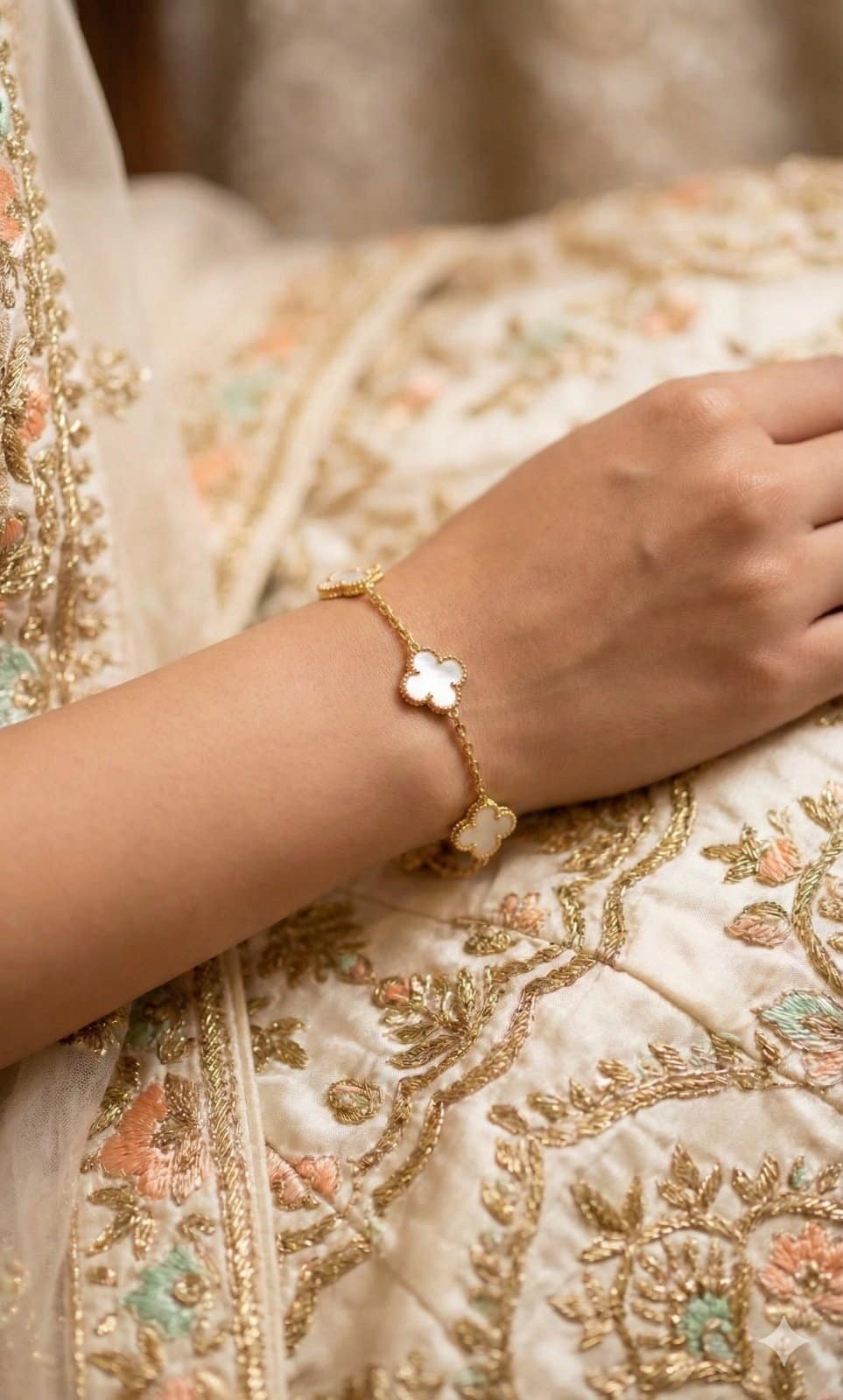 Whether styled with ethnic outfits, festive wear, pastel dresses or elegant western looks, this bracelet blends seamlessly with every style. It looks especially beautiful when paired with embroidered suits, sarees, lehengas or soft evening outfits.